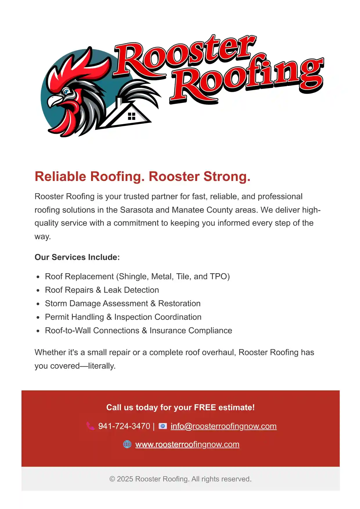 Welcome to the gallery page where you can see some examples of the services that are offered by a trusted expert in Sarasota, FL. If you like what you see, give Rooster Roofing a call at (941) 384-2513. Get some of the best roofing company services in the area today!